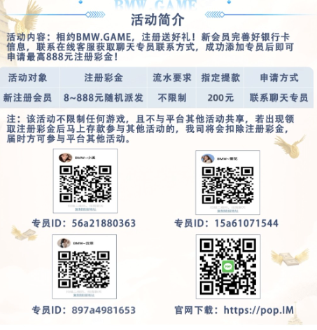 活动详情:新用户注册绑卡找客服申请注册8-888彩金,如果说名额满了就去找pop客服申请人多等人少去,台子半黑切记勿充值