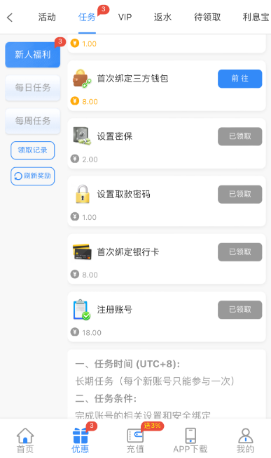 活动详情:新人任务秒领18  其他任务一共领了29,注册直接点任务领取 没有就是黄了